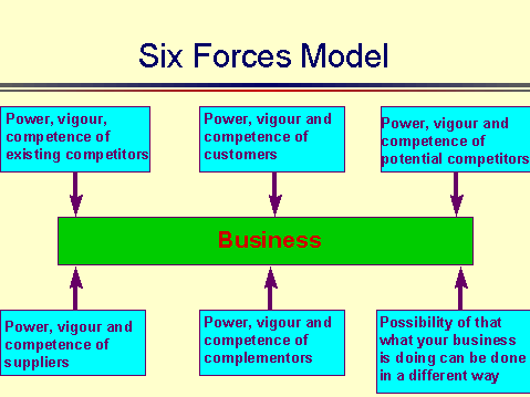 (I do not believe this Porter-Grove model is sufficient for organisations such as those in South Africa. The reason is their model does not enable sufficient enquiry into the importance and effect of socio-political changes on the business. There are 10x forces originating form this source that are as important for business as these other six dimension they indicate. I believe the reason they omit this is that in their American centred management world there is sufficient stability form this seventh dimension that this need not be considered as a source for major turbulence. Globally there are clearly many societies where this is no longer so.)