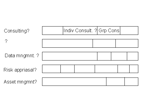 One of the value adding activities under the group business column, would be investment. Originally, the investment column was an internal function to provide this need (also for the individual life column), but has already moved to become a function that also directly serves outside customers. It is becoming a field of excellence and competition, in Grove’s terms, in its own right. Another function under group business is that of risk appraisal. This activity is shifting towards its own field of specialisation and competition. In both cases the classical value chain (Figure 2) is starting to ‘unbundle’ and shift to Figure 5. These are collectively just small steps towards the horizontalisation of the industry. My perception of what is happening is that Figure 8 is a better depiction of the current status of a classical life assurer organisation.
